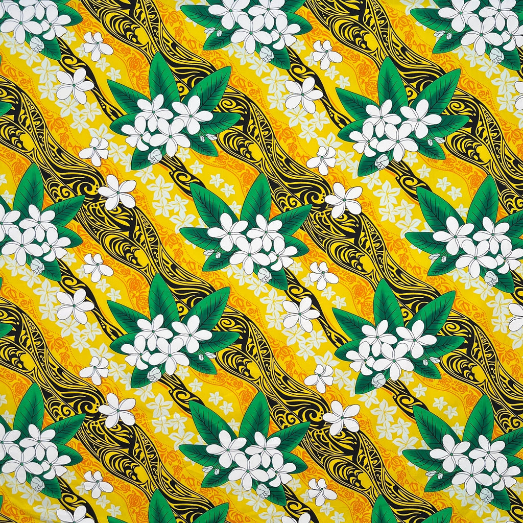 Introducing our Tiare & Banana Leaf Tribal Design Fabric, made from 100% cotton and perfect for a variety of projects. With a beautifully intricate pattern, this fabric offers both style and durability. Add a touch of tribal flair to your next creation with this high-quality cotton fabric.