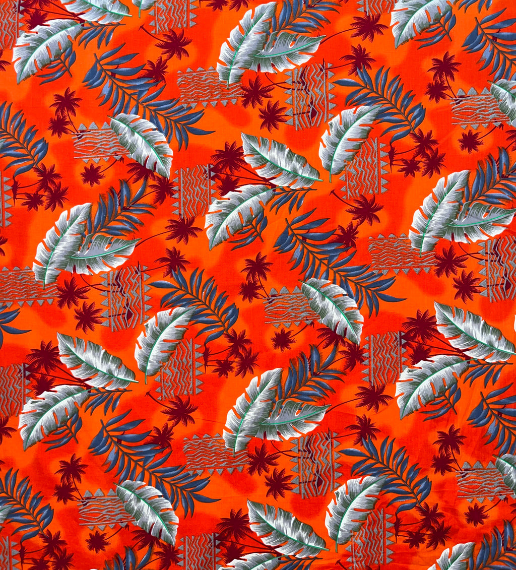 Split Leaves and Hammock Ferns scattered around to create a beautiful all over design. Available in 4 Vibrant colorways (Orange, Blue, Charcoal, Red)