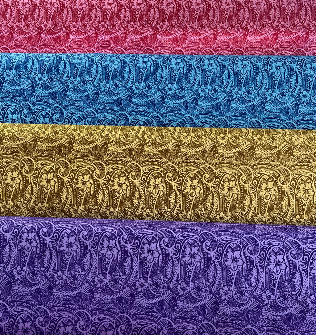 Add a touch of traditional Polynesian art to your projects with our Mini Hibiscus Traditional Polynesian Tattoo Polyester Fabric. This fabric features small hibiscus flowers with intricate tattoo designs, all on a soft polyester fabric with a poly-cotton touch. Enhance your designs with this unique and durable fabric.