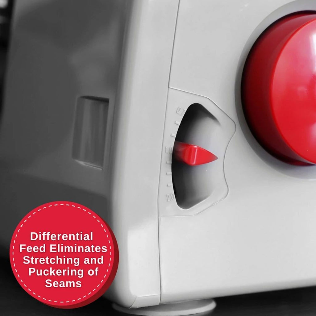 All of your serger projects are covered with the SINGER® HD0450S! Choose from seam finishes, hem finishes and decorative edges. You can use 2 threads, 3 threads or 4 threads for a variety of stitch combinations. Plus, the color coded threading system makes it easy to thread. Easily adjust the Differential Feed with the turn of a dial. You can sew fabrics without puckering, or create a gathered look on stretch or knit fabrics!