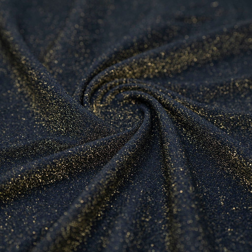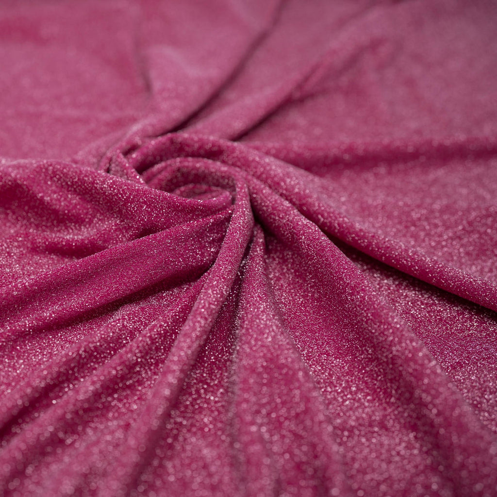 DELUXE Nylon Spandex Lurex is a collection of vibrant stretch fabrics with dazzling metallic Lurex fibers woven into the face and a soft nylon spandex back. With their plush texture, opaque nature, and soft stretch backing, these fabrics are excellent for dance, cheerleading, ice skating and band garments, as well as form-fitting fashion. The combination of metallic Lurex fibers and the soft spandex backing provides an optimal balance of stretch, flexibility, and durability.
