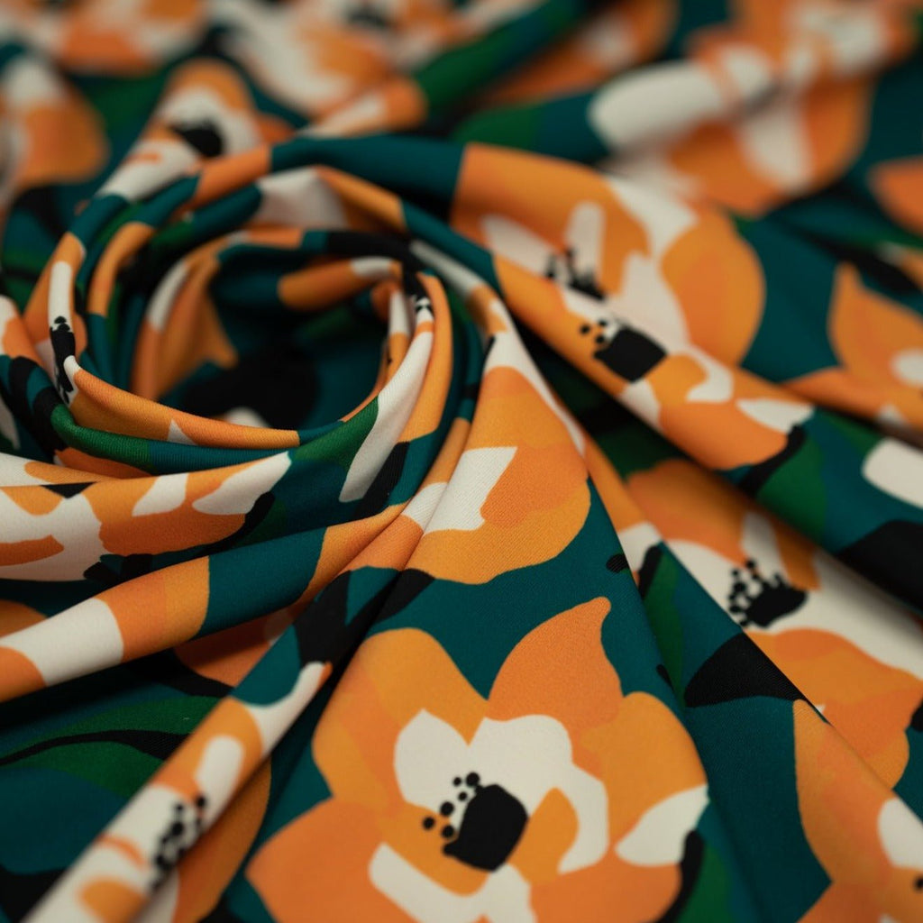 Abstract Painted Lilies Printed Spandex Fabric is manufactured using high-quality 4-way stretch nylon spandex fabric. This textile was created using a Direct to Ground Digital Printing method allowing the dye to fully saturate into the material achieving vibrant colors and full coverage as you stretch. This fabric can be stretched in all directions and has great recovery as a result of the high spandex content. Specifically engineered for Swimwear, Dancewear, Activewear, and Cosplay. This fabric is designed to be both strong and durable, providing reliable performance throughout wear and conditions. It is perfect for fashion projects that require intense movement and flexibility.