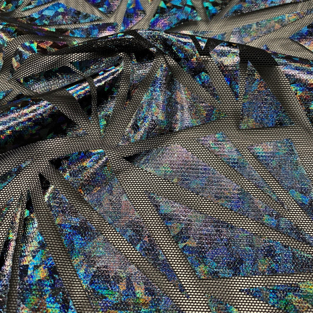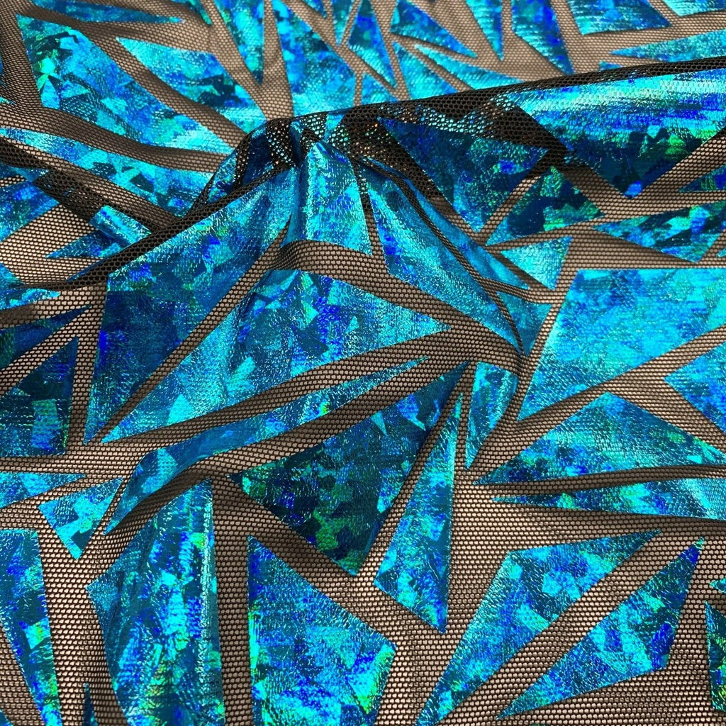 Abstract Triangle is a 4-way stretch Polyester Mesh with shattered glass foil. This fabric is excellent for dancewear and performance costumes. It's lightweight and breathable, making it perfect for dancewear that needs to have maximum movement and flexibility. It's easy to care for and offers bold, eye-catching details that will take any performance costume to the next level. This fabric is durable and long-lasting, so you can trust that your performance costume will stand up to the rigors of both practice and performance.