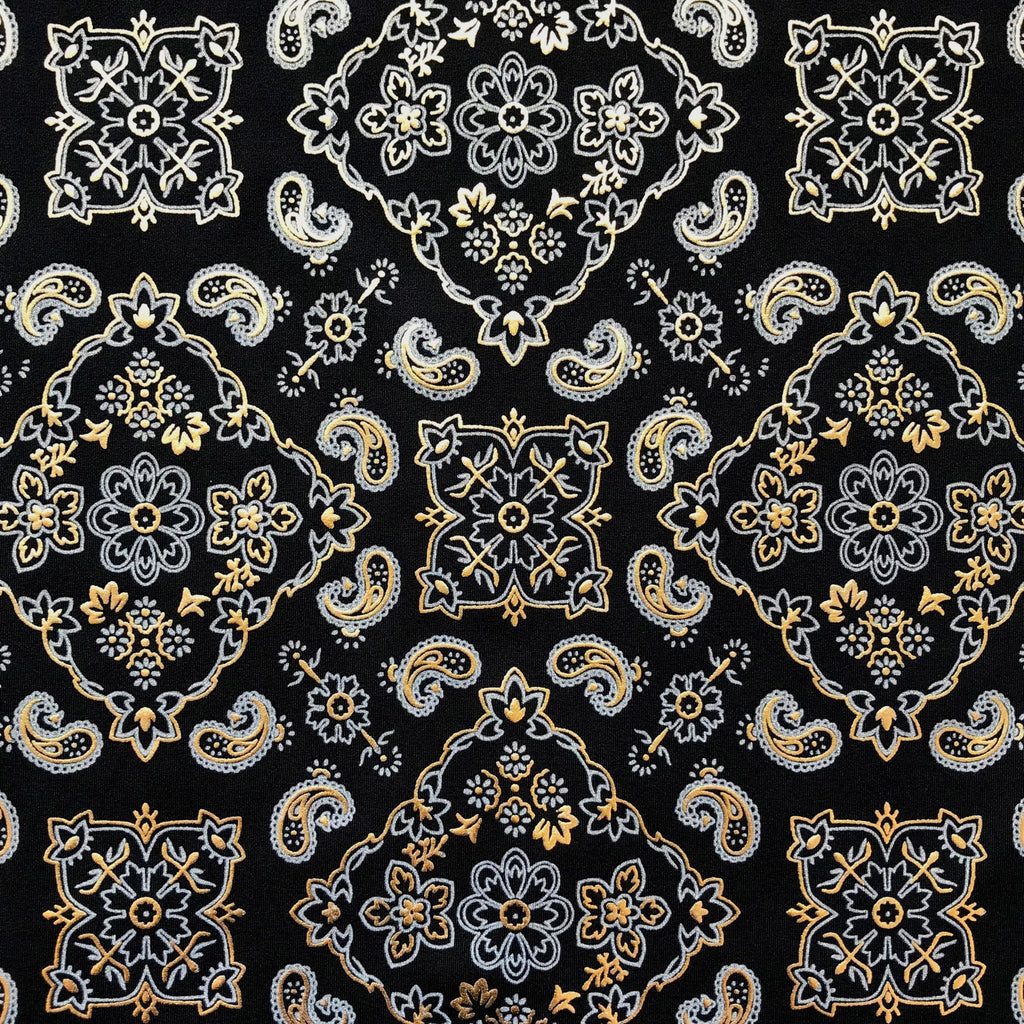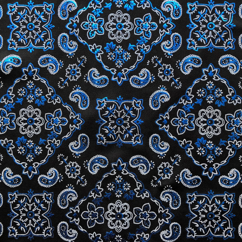 Bandana Foil Printed Spandex Fabric is manufactured using high-quality 4-way stretch nylon spandex fabric. This textile was created using a Bandana Paisley Foil Pattern printed over a Solid Spandex allowing us to create this Funky and Cool spandex. This fabric can be stretched in all directions without foil cracking and has great recovery as a result of the high spandex content. Specifically engineered for Dancewear, Performance and Cosplay. This fabric is lightweight and breathable, perfect for a day spent outdoors. It's also durable and designed to last, so you can be sure you'll get your money's worth.