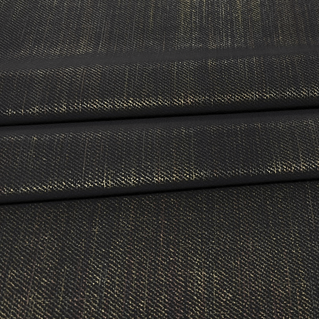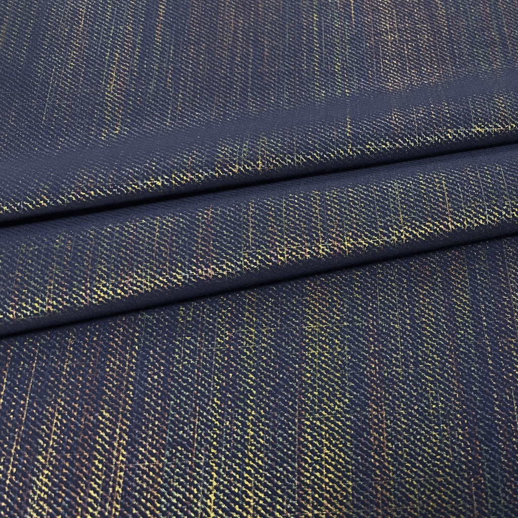 This luxurious-looking, medium-weight fabric, composed of 80% nylon and 20% spandex at 197 gsm, features a deep navy blue base with subtle yet captivating vertical striations of shimmering gold, red, and green threads woven throughout. The 4-way stretch and generous usable width of 55/56 inches make it an excellent choice for creating dynamic performance costumes, comfortable gymnastics apparel, elegant dancewear, and eye-catching festival wear. The interplay of the rich base color and the delicate, iridescent stripes adds a sophisticated sheen and visual interest, ensuring garments made from this fabric will move beautifully and catch the light.