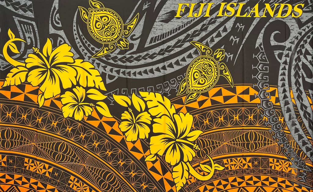 Expertly crafted with a Fijian tattoo background, this sarong features two hibiscus clusters in the left hand side corner and two floating turtles throughout the sarong. The design captures the beauty of the Fiji Islands, making it the perfect addition to your tropical wardrobe.