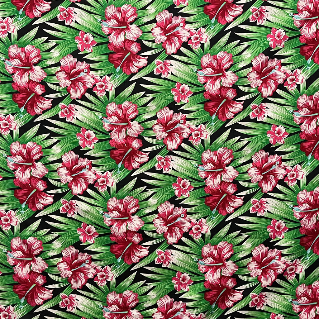 Add a touch of tropical beauty to your home decor or craft projects with this Multicolor Hibiscus Flowers Fabric. Made of high-quality polyester, it features a vibrant pattern of palm trees and hibiscus flowers that will bring a sense of paradise to any space. Its soft, poly cotton touch adds comfort and luxury.