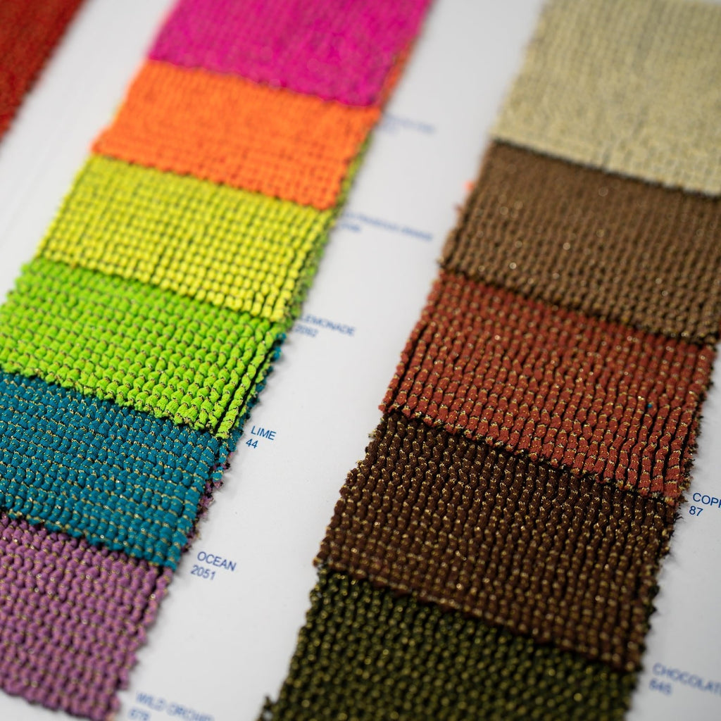 The Blue Moon Fabrics Ritzy Color Card includes cut swatches of all 12 Colors of our Ritzy Crinkle Spandex. Ritzy is a 4-way stretch fabric with incredible stretch and amazing recoil. Ideal for swimwear, resort fashion, dance and lounge wear. The luxurious finish of Ritzy makes it perfect for fashion-forward designs, with a balanced blend of durability, stretch, and comfort. Available in 12 stylish shades, these are ideal fabrics for creating glamorous, long-lasting fashion looks. The lightweight fabrics are perfect for a variety of projects and projects that require movement. They are durable and won't fade, making them ideal for use in any project where fashion, durability, and comfort are key components.